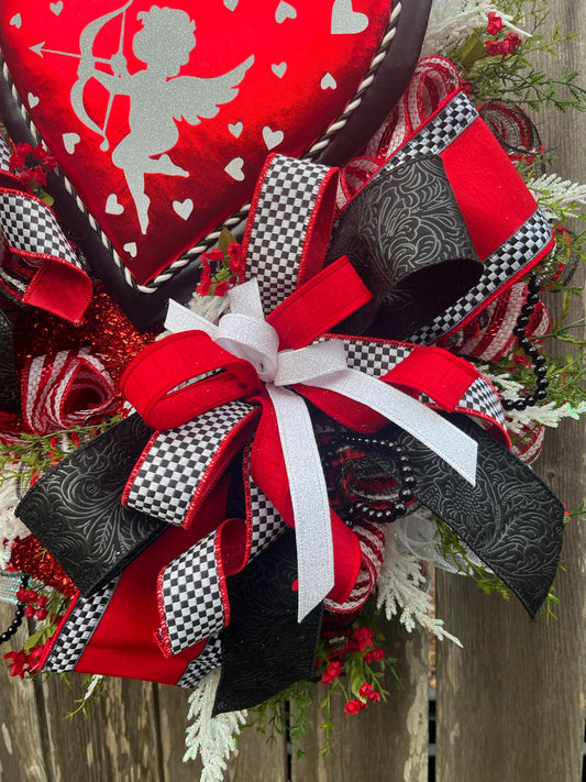 Valentine’s Day Wreath, Cupid Heart Wreath, Front Door Valentine Decor