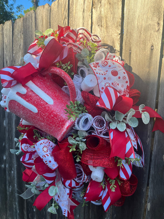 Christmas Hot Cocoa Wreath for front door, Peppermint Candy theme, whimsical Christmas wreath, front door decor, Holiday gifts