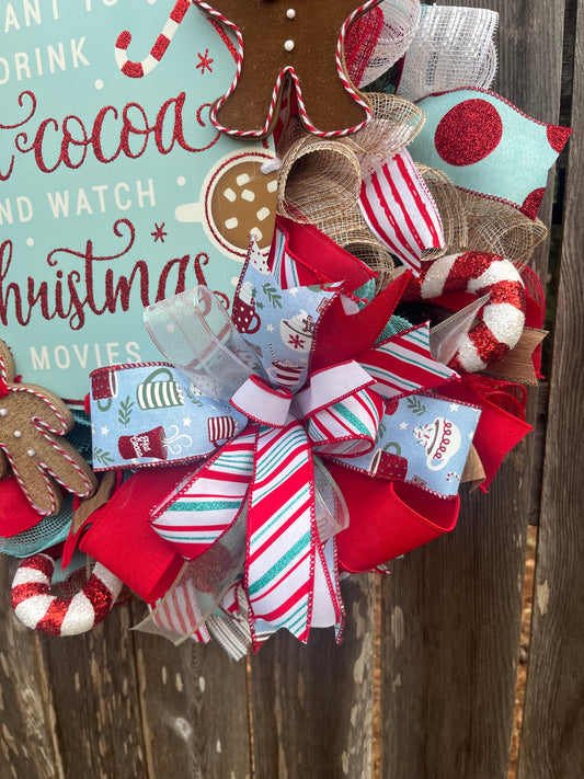 Christmas Cocoa front door wreath, Gingerbread decor, Winter Wreath, Holiday decor, Christmas traditions, Christmas wreath, whimsical decor