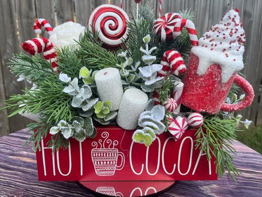 Christmas table decor, hot cocoa and candy canes theme, mantle holiday decor, Christmas gifts, winter table decor, holiday decorations