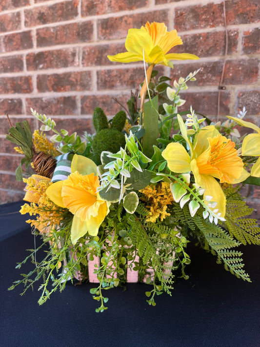 Easter bunny rustic floral arrangement, springtime floral design for the table, Easter table decor, spring home decor, party decorations