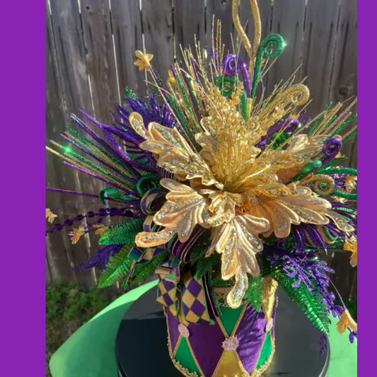 Mardi Gras Floral Centerpiece - Festive Gold, Purple & Green Arrangement