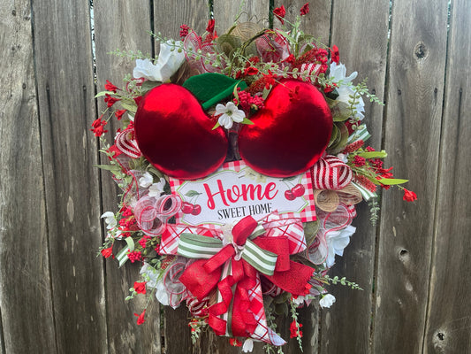 Spring front door wreath, cherry inspired decor, farmhouse decor, summer front door decor, home sweet home theme, mothers day gift