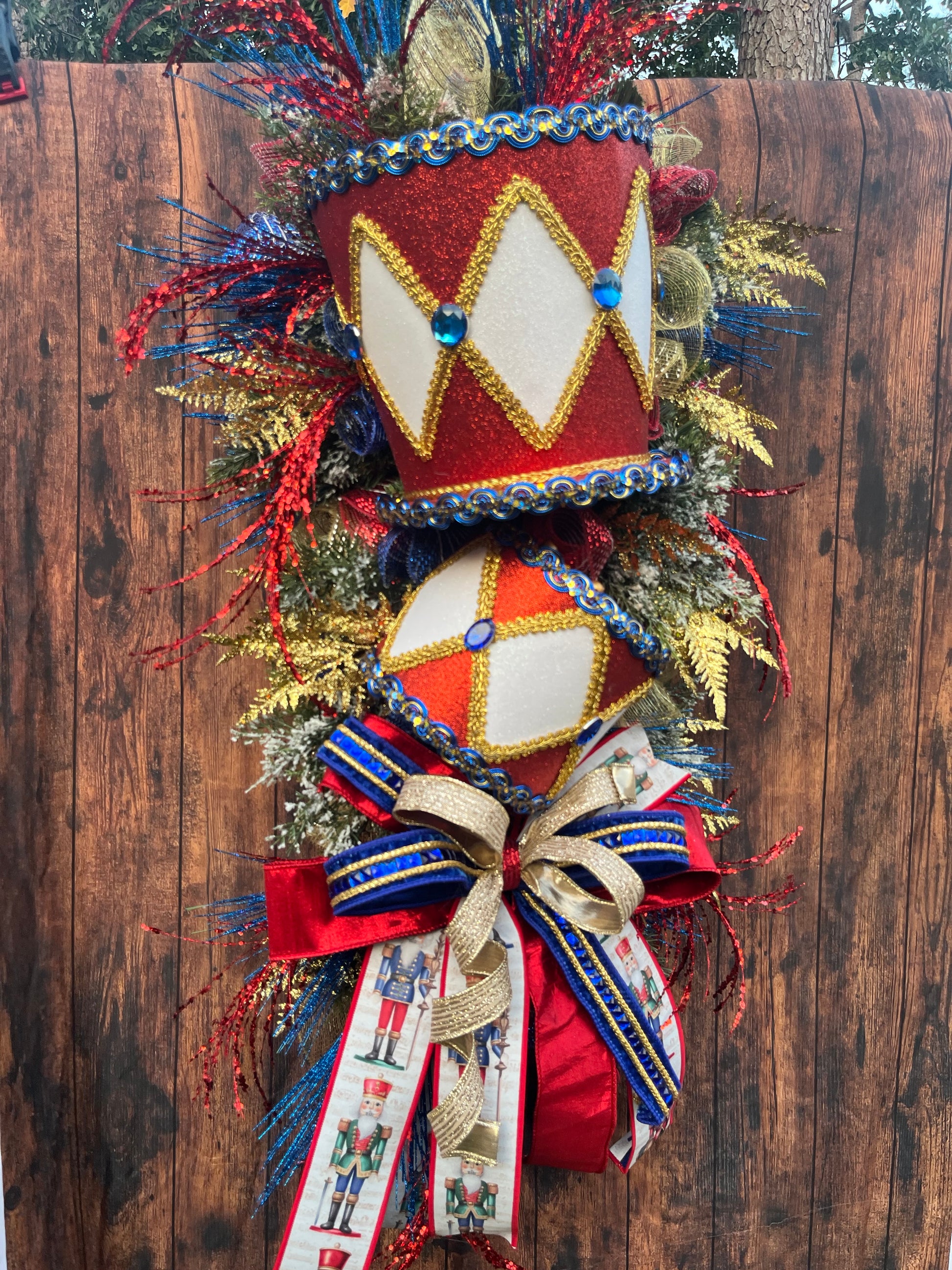 Elevate your Christmas décor with this show-stopping Nutcracker Drum Christmas Swag, exploding with festive color, glitter, and magical holiday charm!