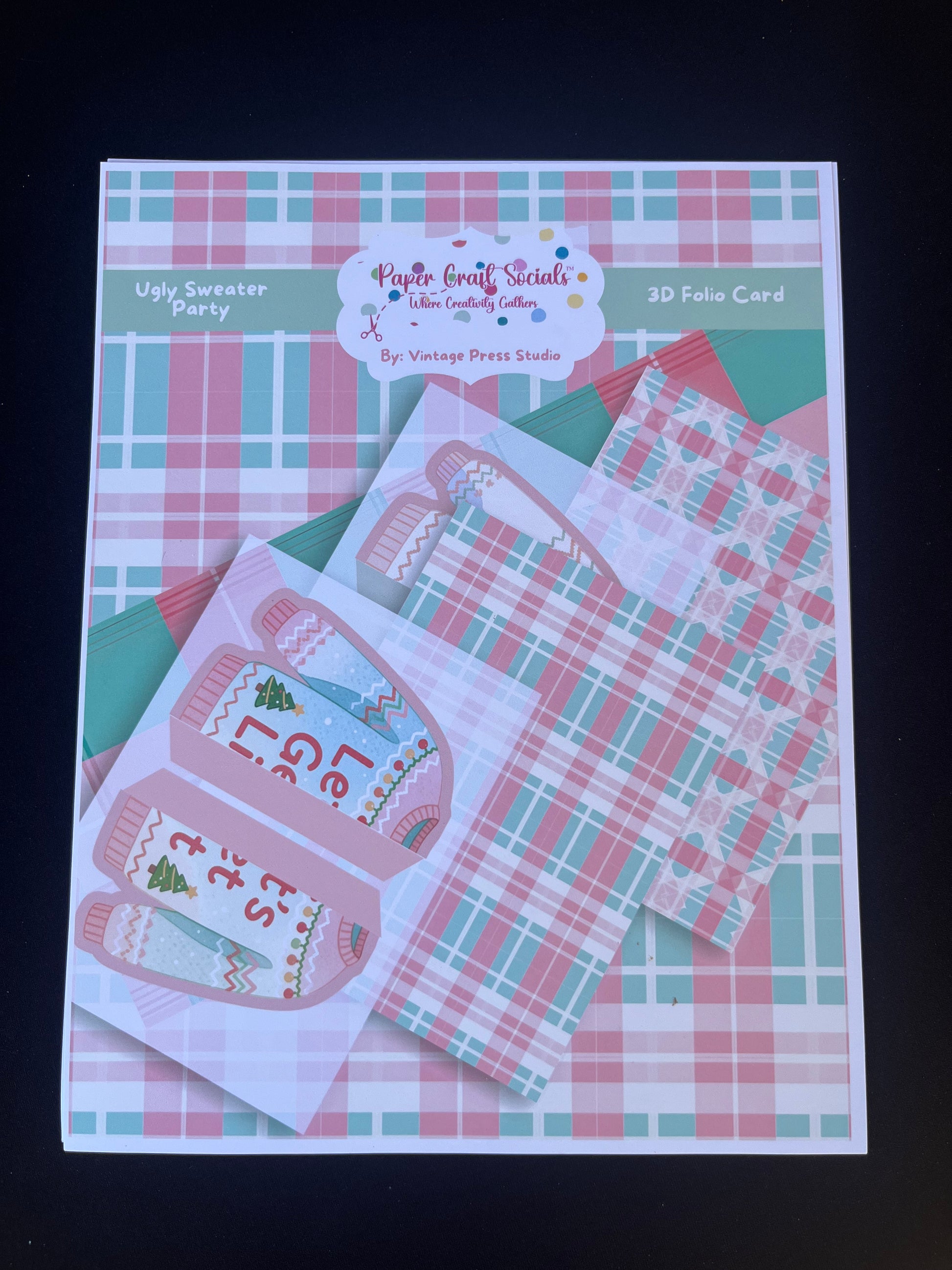 This Ugly Sweater Party 3D Folio Card Kit from Paper Craft Socialsâ„¢ brings festive crafting fun right to your craft table. Perfect for junk journal lovers, card makers, scrapbookers, or anyone who adores whimsical holiday papercrafting.